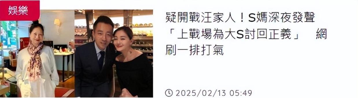 大S婆婆疑似宣战前两天发的那个明显是在表达悲伤,这次则看起来像是在宣战。不过这次s妈也没透露太多,但网友们猜可能是想跟汪小菲对着干。据说台湾那边的媒体也爆出来了,这次好像是为了争夺大S的遗产,甚至还有内幕人士爆料!