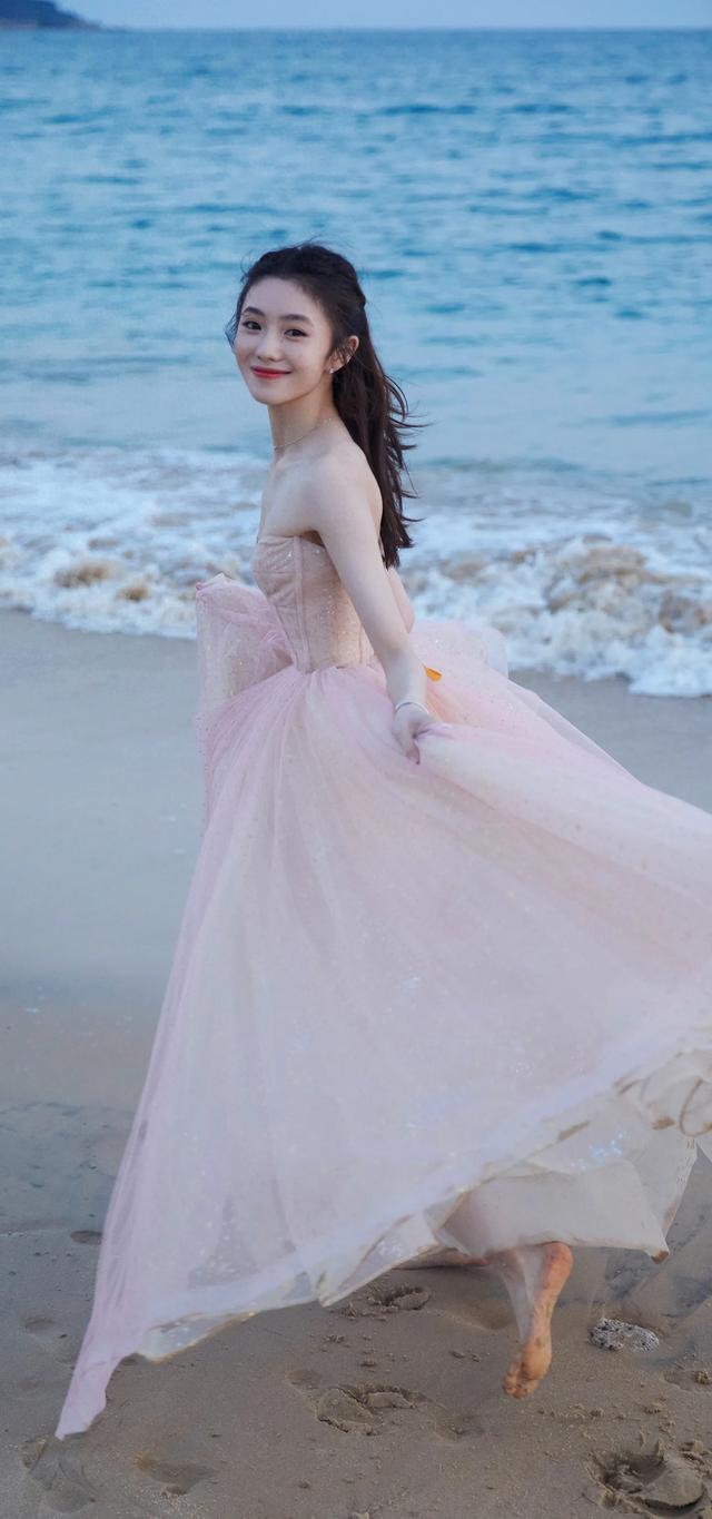 刘亦菲十七八岁时在海边游玩留下的一组照片,肚子上好多肉肉啊!