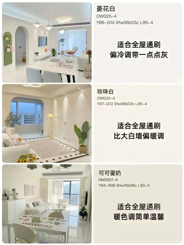 ▲上图为常用的墙顶通刷的油漆色号,正常油漆是调配颜色,最好先涂刷300*300mm的色块,以便观察色彩的深浅程度,而后再大面积涂刷。