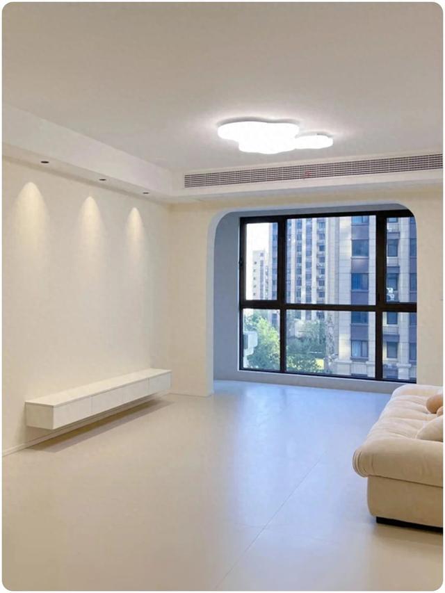 ▲现代简约风格下,墙顶一体通刷,暖白色调统一,色调越少,空间越显干净简洁,后期家具搭配也会更具层次感,更加柔和干净。