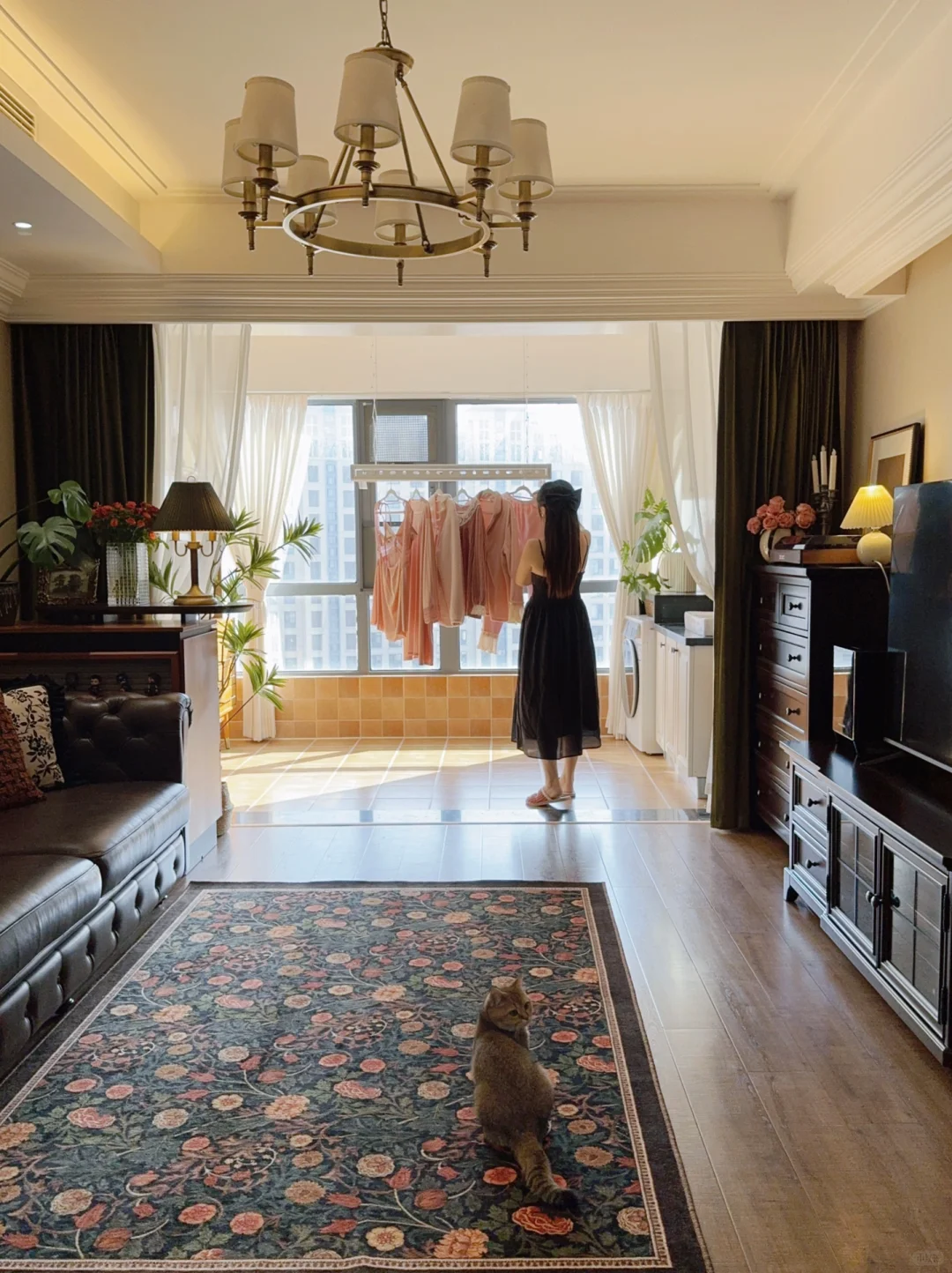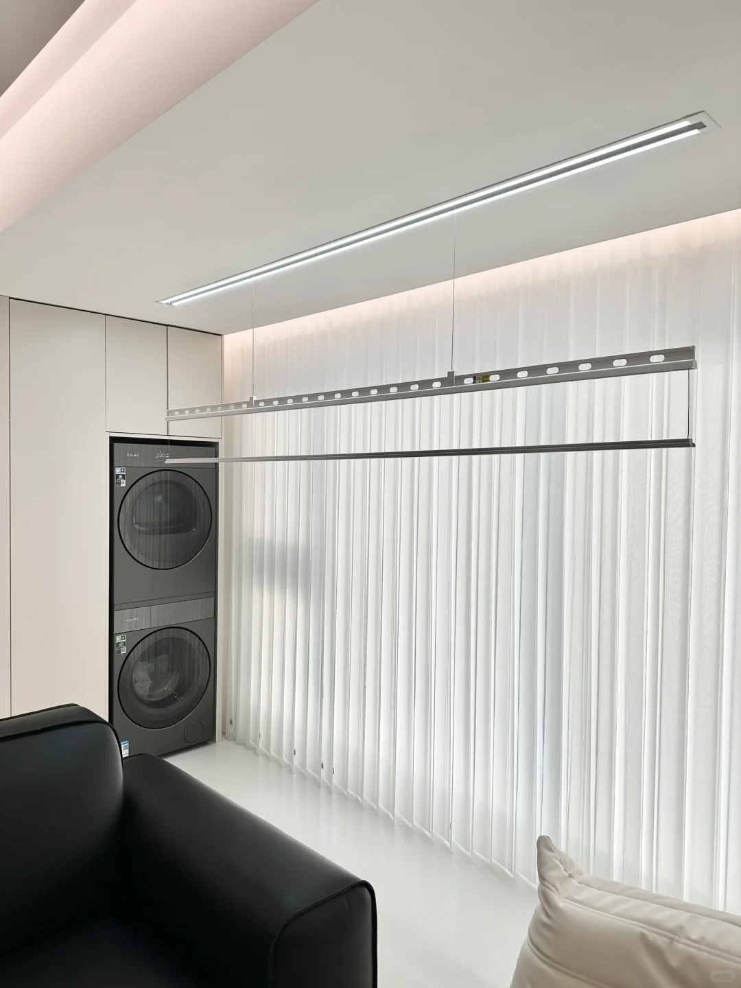 想要解决晾衣丑的问题,可以尝试在阳台两侧安装晾衣架,粘在客厅的角度就看不到晾晒的衣服了,而且这样还不会影响阳台的采光。