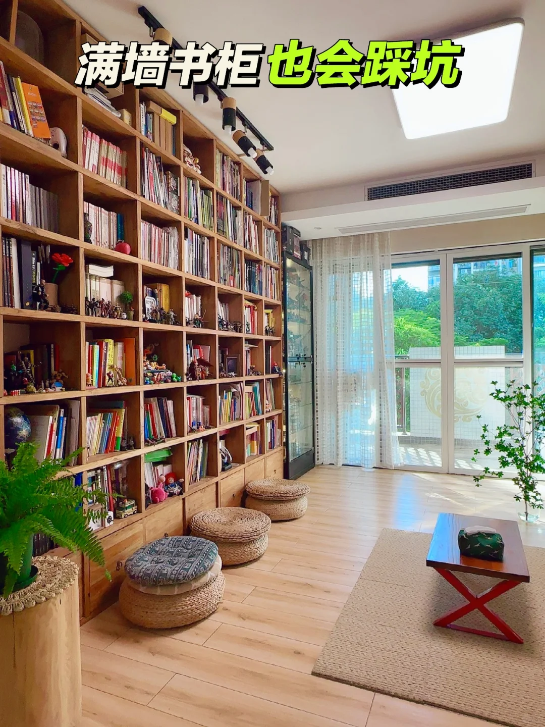 装修的时候,在客厅做了一组开放式书柜。不仅可以收纳大量书籍,还可以当展示柜来使用。可入住一星期之后,就后悔了。