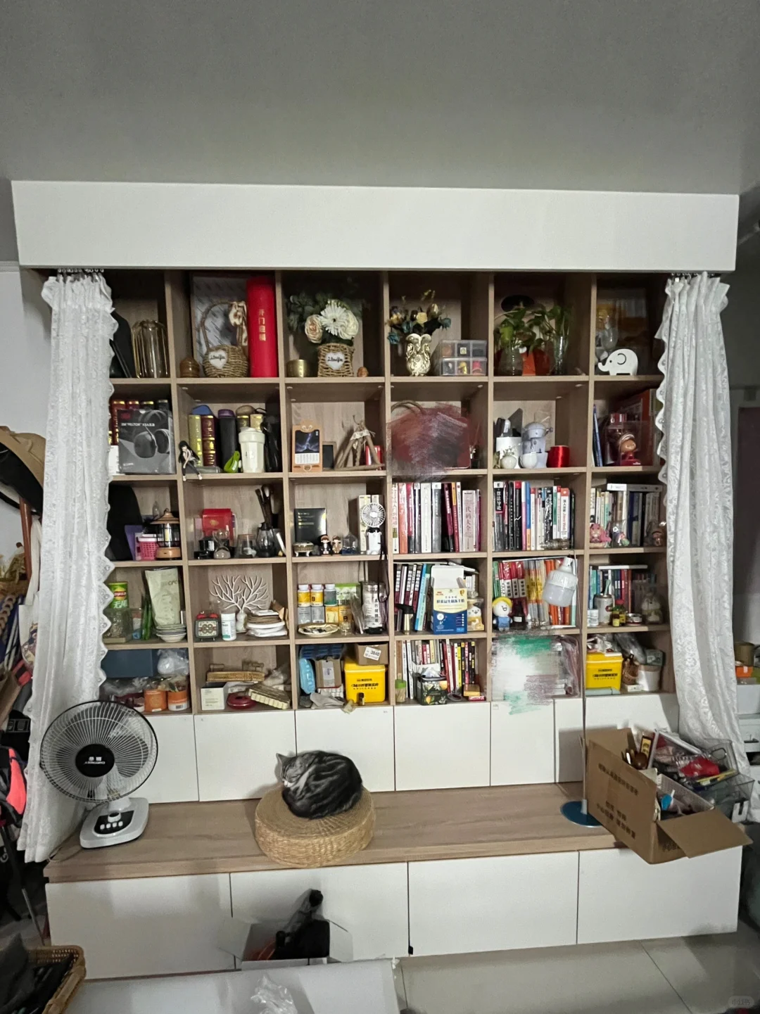 所以真心不建议大家不要做开放式书柜,还是老老实实安上半透明的柜门吧。不仅防止积灰,关上柜门也不会显得乱。