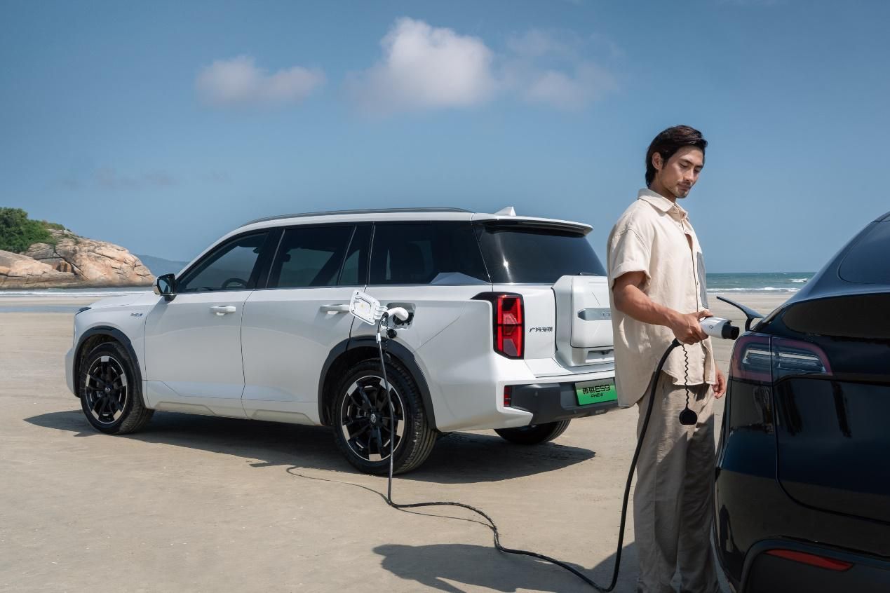 不仅能在户外随时充足“带电”,传祺ES9也是电力十足的救援能手,5.5kW的车对车放电就像一个移动的大充电宝。在外畅玩的时候,当别的新能源车能量不足时,传祺ES9能为他们应急补能,让你真正实现户外用电无焦虑,尽显爷们儿的智慧。
