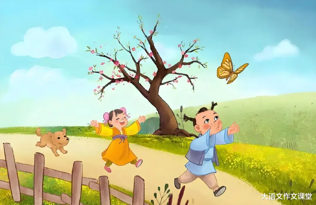 译文稀稀落落的篱笆旁,一条小路通向远方,路旁树上的新叶刚刚长出还没有形成树荫。小孩子奔跑着追赶黄色的蝴蝶,可是蝴蝶飞入黄色的菜花丛中,就再也找不到了。注释宿:住,过夜。新市:地名。今浙江省湖州市德清县新市镇。徐公店:姓徐的人家开的酒店名。公:古代对男子的尊称。篱落:篱笆。疏疏:稀疏,稀稀落落的样子。一径深:一条小路很远很远。径:小路。深:深远。头:树枝头 。新绿:刚刚长出的绿叶。未成阴:尚未形成树荫。阴:树叶茂盛浓密而形成的树荫。急走:奔跑。走,古代指跑。中心思想这首诗描绘了一幅乡村春末夏初的田园风光图和儿童天真烂漫追逐蝴蝶的场景,通过对自然景物和人物活动的描写,表现了诗人对乡村生活的赞美和对儿童纯真天性的喜爱,抒发了诗人对美好田园生活的向往之情。赏析前两句 “篱落疏疏一径深,树头新绿未成阴”,作者用简洁的语言描绘出了一幅乡村田园风光图。篱笆稀稀疏疏,一条小路伸向远方,给人一种宁静、幽深的感觉。而树上的新叶还没有长得很茂密,点明了这是暮春时节,一切都充满了生机与活力。后两句 “儿童急走追黄蝶,飞入菜花无处寻” 则是动态描写,将儿童的天真活泼展现得淋漓尽致。孩子们奔跑着追赶黄色的蝴蝶,那欢快的场景仿佛就在眼前。而蝴蝶飞入菜花后就找不到了,因为黄色的蝴蝶和黄色的菜花颜色相近,融为一体,这一画面充满了童趣,也让整首诗更富有生活气息。写作背景这首诗是宋代诗人杨万里在外出旅行途中,借宿在新市(今湖南省攸县北)的徐公店时所作。诗人在乡村旅途中,被当地的田园风光和孩子们天真烂漫的活动所吸引,于是用他那清新自然的笔触,写下了这首充满生活情趣的诗篇,将乡村生活的美好瞬间永久地定格在诗中。作者简介杨万里,字廷秀,号诚斋,南宋著名诗人。他一生作诗两万多首,传世作品有四千二百首,被誉为一代诗宗。杨万里的诗歌大多描写自然景物,且以此见长,也有不少篇章反映民间疾苦、抒发爱国感情。他的诗风格独特,语言浅近明白、清新自然,富有幽默情趣,被称为 “诚斋体”。与陆游、尤袤、范成大并称 “中兴四大诗人”。