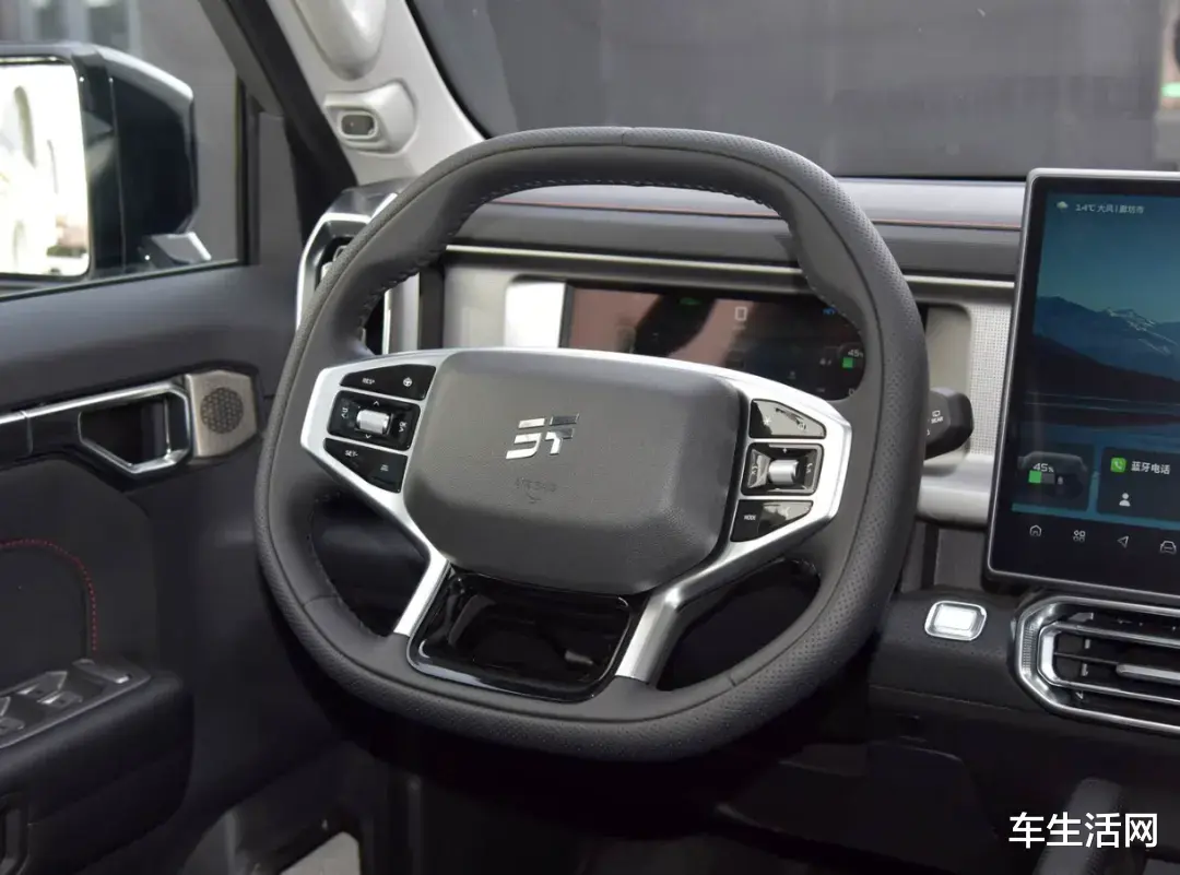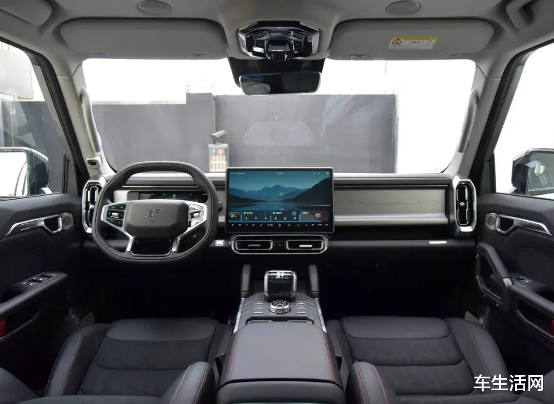 加长之后对越野的影响并不大,基础的越野参数上,保留了原版28°接近角、22°离去角、205mm最小离地间隙和700mm涉水深度的越野性能。另外,还有IP68防水电池包及牧马人同源电控牙嵌式差速锁,配合7+X一键越野模式,整体的越野实力在轻越野里算是相当出色了。