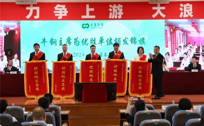 会上, 获得2024上半年优胜单位荣誉称号的大商电器集团公司、佳木斯地区集团等5家地区集团(公司),千盛百货信阳店、鸡西新玛特中心店、铝城购物中心等49家经营单位获颁锦旗,新任职干部获颁聘书。