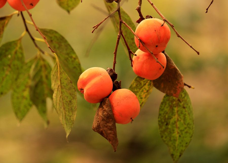 很多人只知道柿子有大小之分,但不知这是品种差异。火罐柿子,牛心柿子,磨盘柿子,富平尖柿,临潼火晶柿……大小不一,吃法不同。爱小小的野柿子,皮色橙红、透明无籽、汁多肉软、甜美非常。撮在指尖,撕个小缝儿,舔开肥厚的果肉,不用担心舌尖被涩涩的味觉所刺激,朝着口使劲地嘬上一下,噗的一声,厚实紧密的果肉炸裂开来,汁水四溢,霸道的甘甜汹涌而来,随即一股冰凉,软糯,清甜的感觉透过口腔瞬间传递到心里,立马“人间至味”四个字在脑海里游荡。再看一下手里,只有薄薄的一层水晶般剔透果皮了。一个不够,三个刚好,六个才过瘾啊!