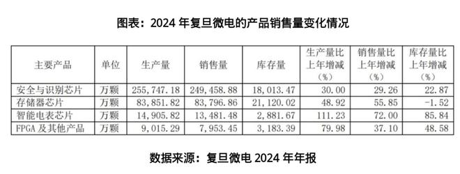 具体来看,2024年,复旦微电的安全与识别芯片销售量同比增长29.26%,存储器芯片销售量同比增长55.85%,智能电表芯片销售量同比增长72%,FPGA及其他产品销售量同比增长37.1%。