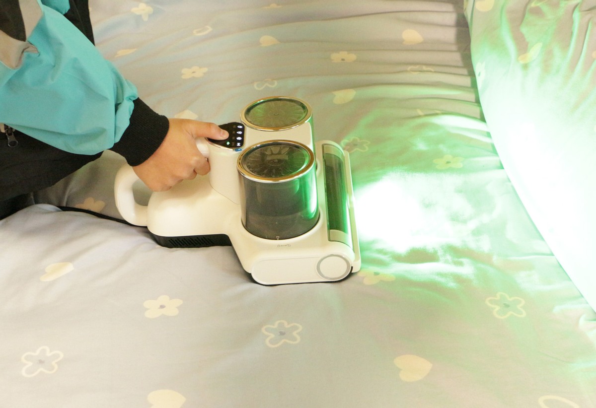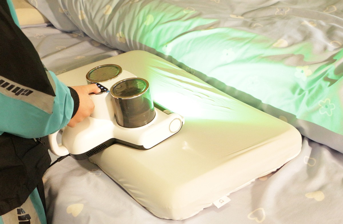拍打震动之间,配合RM1除螨仪的253.7NM波长紫外线进行杀菌。