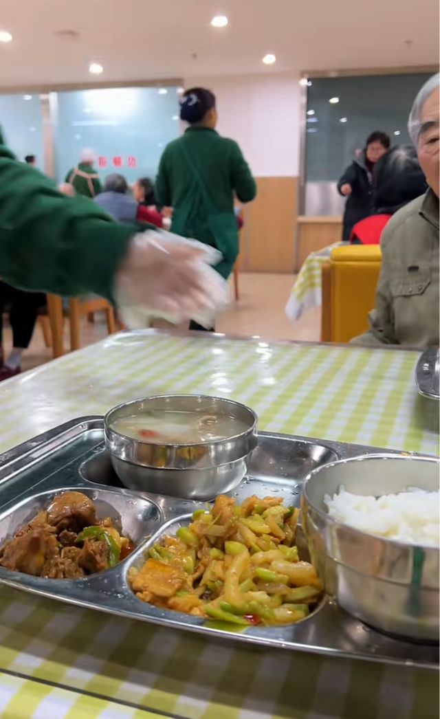 而小伙在养老院还有了一位“饭搭子”,是一位老奶奶。