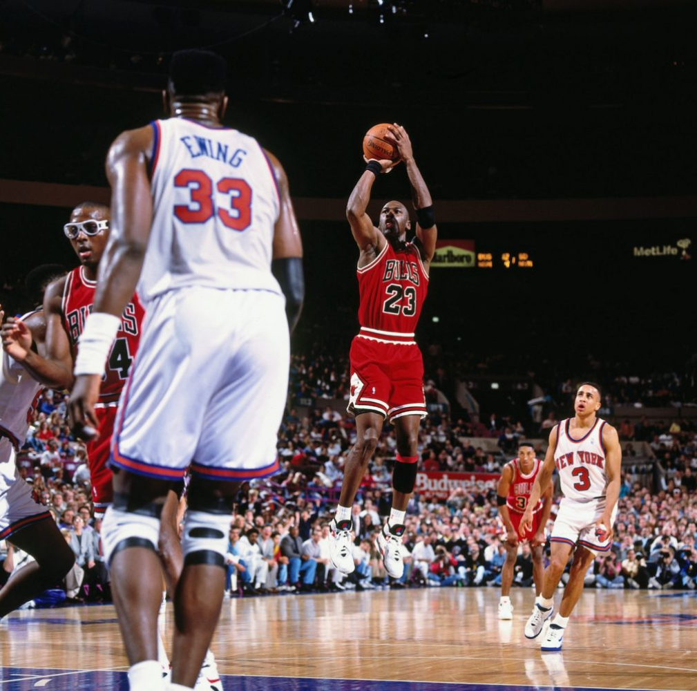 1992年乔丹在对阵开拓者的总决赛中彻底爆发。他的场均35.8分中包含了总决赛首战的“神之表现”:半场命中6记三分,单场砍下39分,并留下了经典的“耸肩动作”。这一系列赛,乔丹再次证明自己是NBA无可争议的王者。