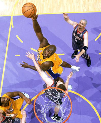 在2001年总决赛中,奥尼尔凭借33分15.8篮板和3.4盖帽的场均数据力压艾弗森率领湖人夺冠。虽然湖人首战输球,但奥尼尔凭借强悍的篮下统治力让76人无力回天。他在攻防两端的表现堪称完美,是湖人“三连冠”不可或缺的核心。