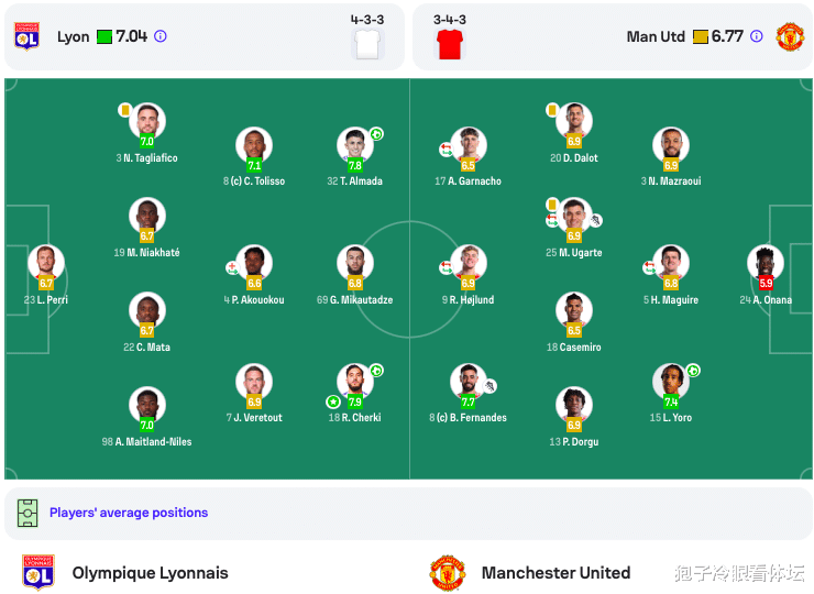 最终,凭借奥纳纳的两次失误,里昂打进两球,2-2战平曼联。赛后的评分显示,奥纳纳拿到了5.9分,不及格,两队最差没有悬念。