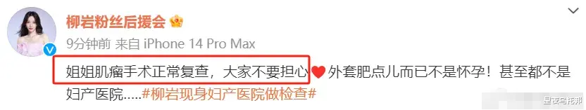 说柳岩是去做肌瘤手术复查,去的也并非是妇产医院。