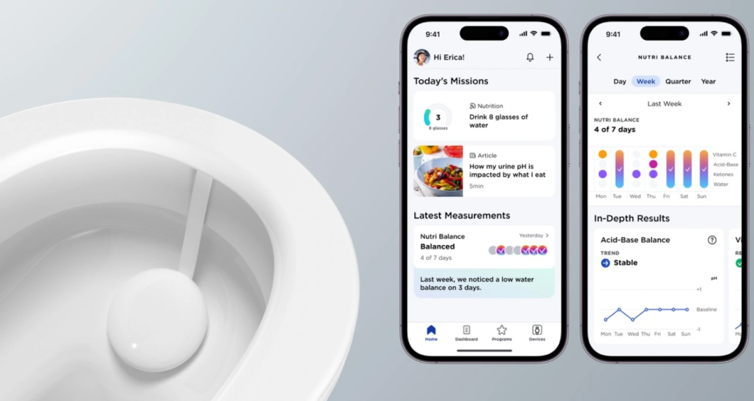 贝壳状的硬件像一个除味剂一样放在马桶的边缘,并在你排尿时收集一小部分液体。大约一分钟后,用户会发现关于他们的月经周期或营养的结论,并且推送到他们的手机上。