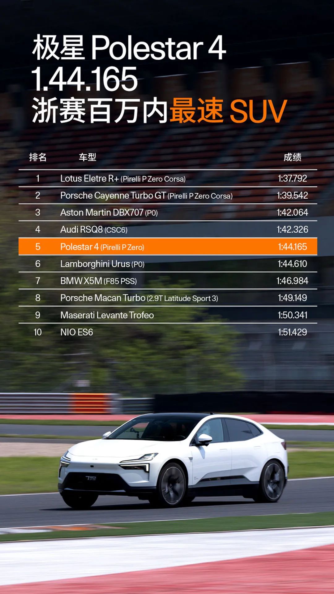 6月18日,百万内最速SUV诞生。全球豪华纯电高性能汽车品牌 Polestar 极星联合浙江国际赛车场官方圈速榜发布 Polestar 极星4浙赛官方圈速成绩,高性能纯电豪华SUV Polestar 极星4 以1分44秒165超越一众百万级高性能SUV,一举成为“浙赛百万内最速SUV”。为与更多用户共庆这一优异成绩,2024年6月18日-8月31日期间,极星4推出限时权益,最高1.44 亿高性能补贴以及其他多重福利。