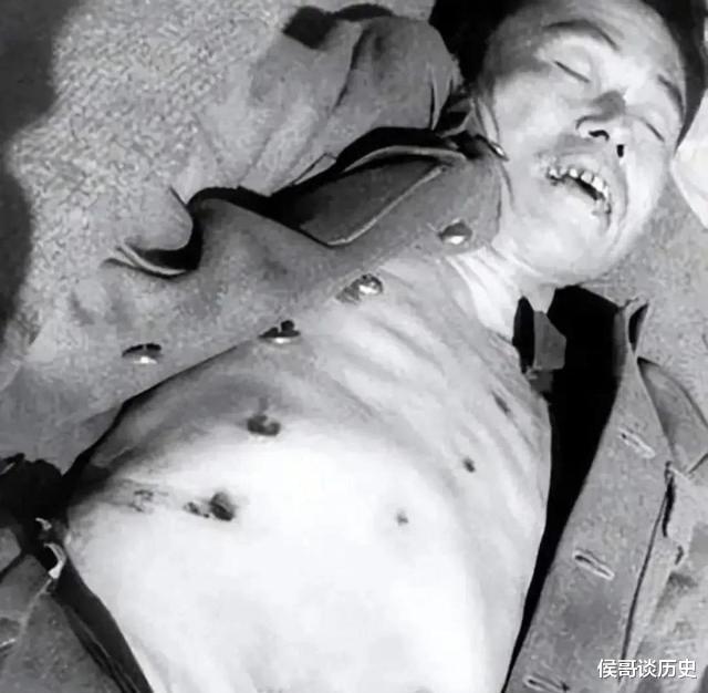 他胸部挨了六七枪,看样子应该是他先爬到这儿,结果被旁边的战士瞅见了,接着就被机枪一阵突突,最后就这么没了命。