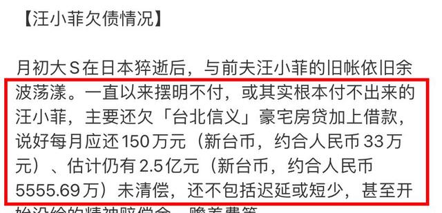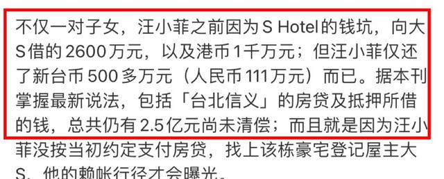 汪小菲与大S的曾经,是外界眼中的“完美婚姻”范本。然而,聚光灯下的光鲜遮掩不了现实生活中的摩擦。在经营家庭的同时,两人还深度捆绑在了商业利益的合作之中,比如S Hotel的投资。汪小菲在婚姻存续期间,为了事业发展,曾多次向大S借款用于酒店经营。然而,随着婚姻破裂,这一利益纽带迅速瓦解,双方财务来往的问题被推上台面,逐步发酵为一场公开的债务纠纷。据多方爆料,大S方面声称汪小菲尚未清偿约2.5亿台币的借款,其中涵盖房贷、生活费以及其他账目,这些问题成为双方频繁“唇枪舌剑”的核心。