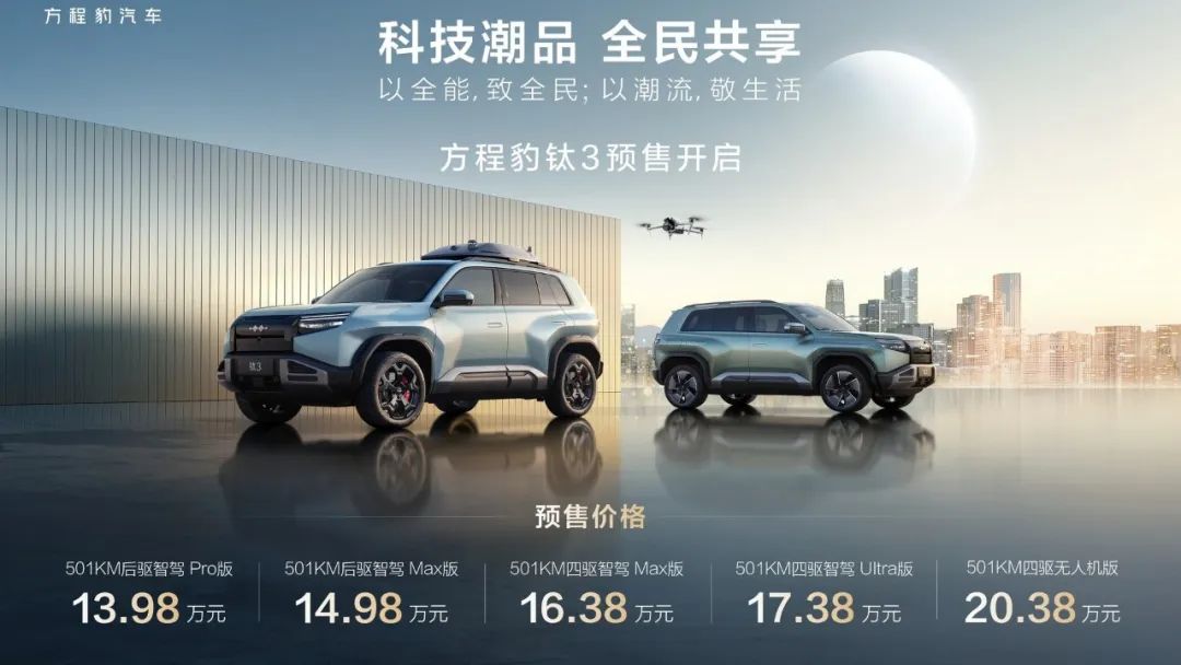 年轻小伙、美女们看过来,方程豹旗下全新车型钛3开启预售喽……