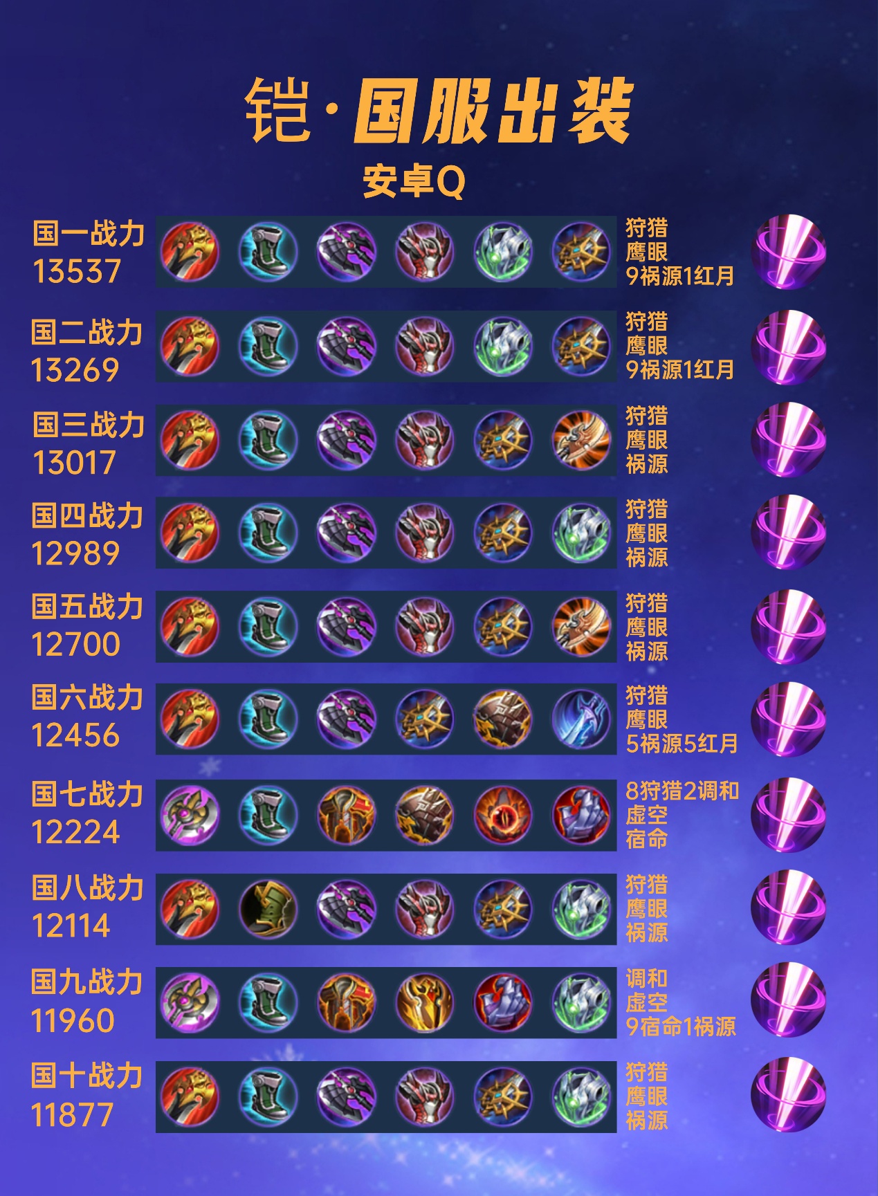 这篇文章我们来看一下40位国服铠的出装铭文汇总。