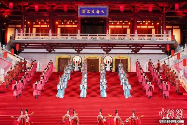 ▲2023年5月18日晚,演员在陕西省西安市大唐芙蓉园举行的欢迎仪式上表演,迎接出席中国-中亚峰会的贵宾。毛建军 摄