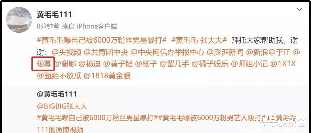 事件的始末2025年1月25日,一名叫“黄毛毛”的网友在网上爆料了一则猛料,而牵连进来的一位明星则是张大大,这一事情爆料后,在网上引发了很大的舆论,到现在张大大也没有回应。