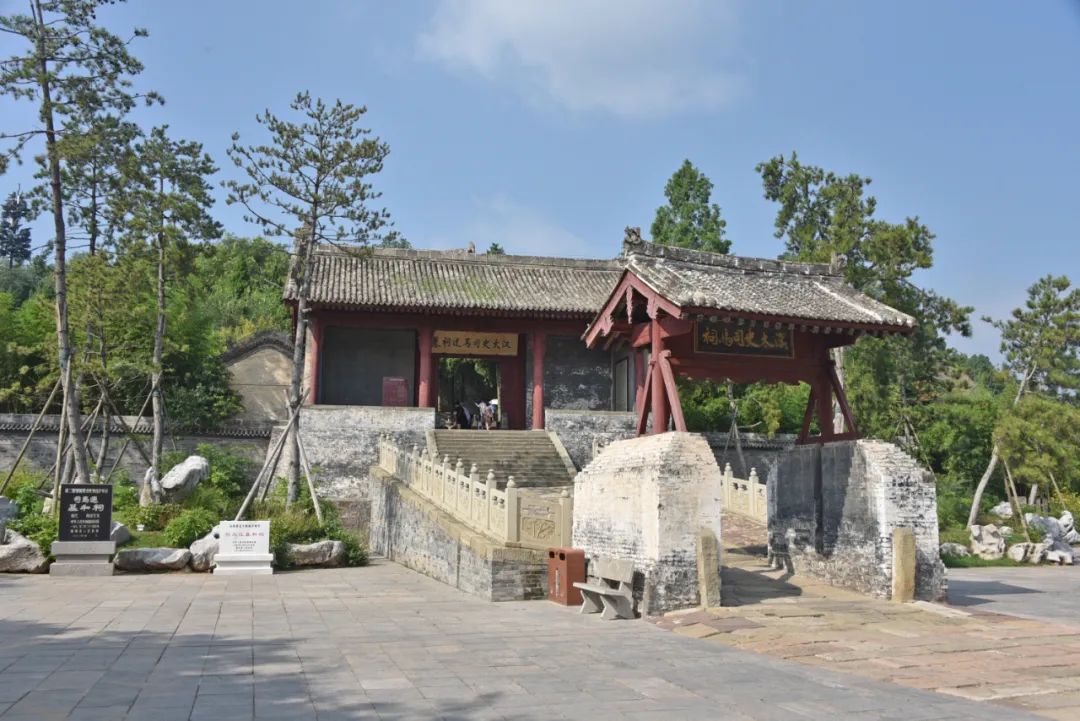 顶着太阳走过了好几百米后,看到这座“文史圣域”的牌坊,从这开始踏上古道,才可以说真正进入了延续上千年的司马迁景区。