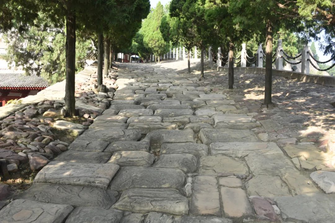 此时巨石铺设的古道变成了青砖铺设,两边高中间低,设计成这样,是为了流水还是骡马行走呢?