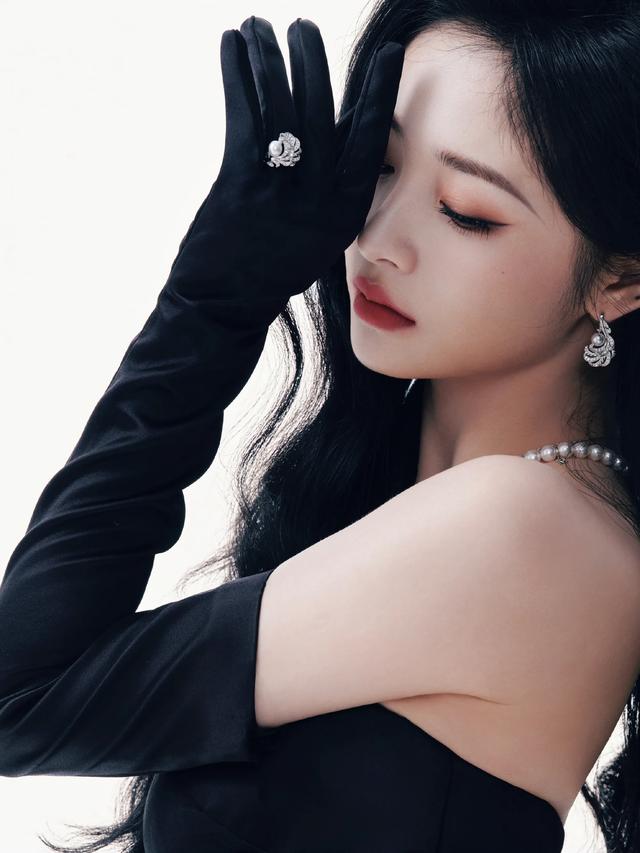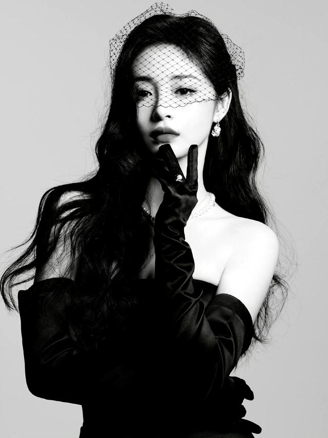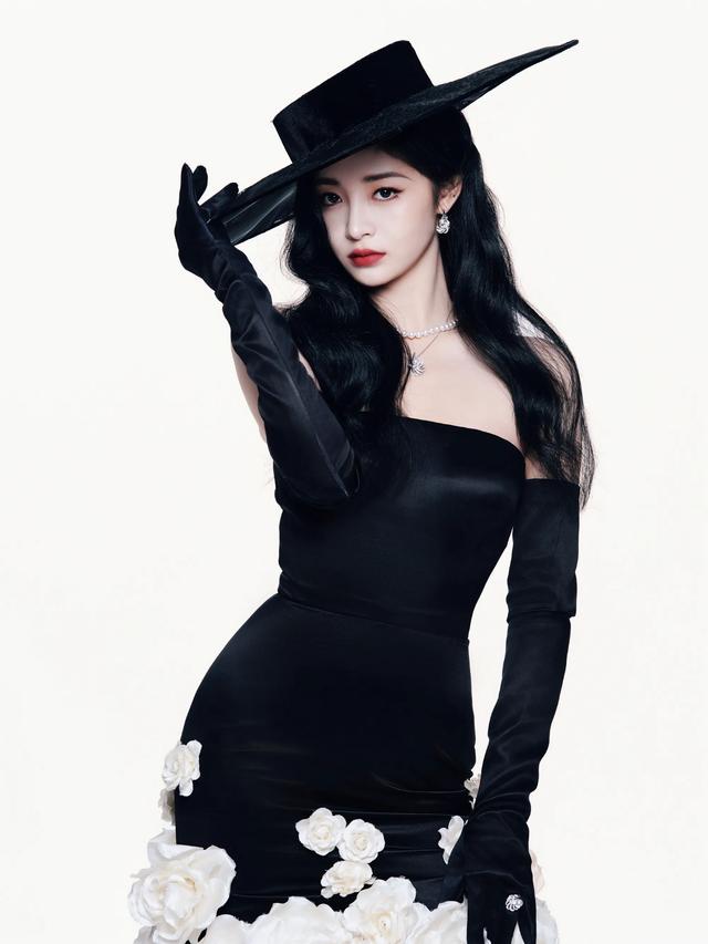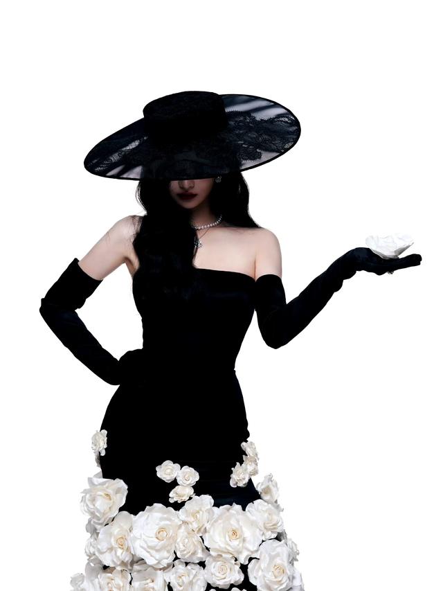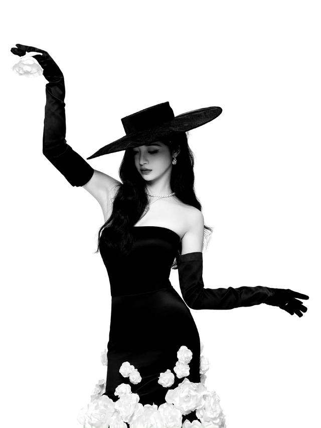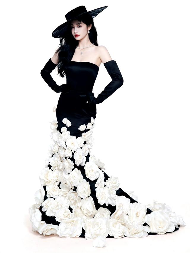 周洁琼抹胸礼裙写真,黑白间绽放纯粹
