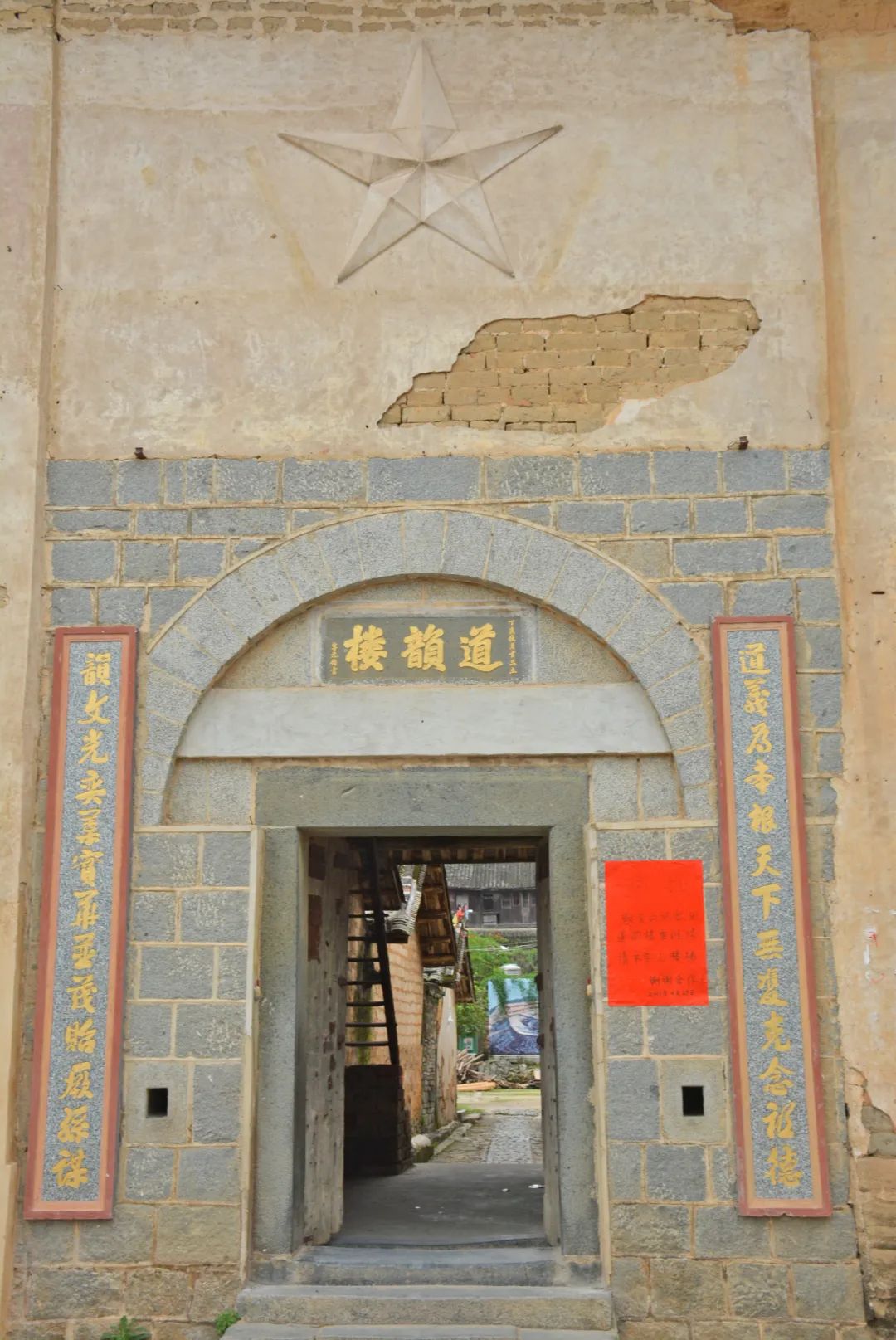 1918年,潮汕地区发生7.3级地震,饶平的很多房屋倒塌,而道韵楼除了几间房屋左右倾斜外,依旧岿然屹立,一直保存到了今天。