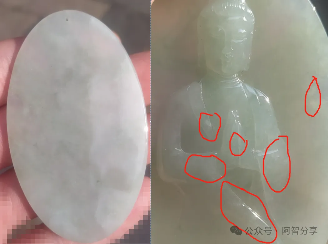 瑕疵👀:整体观察未发现明显的纹、裂、脏。白棉比较重,但经过雕工优化后,不影响价值。