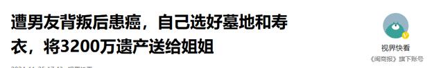 遭男友背叛后患癌,自己选好墓地和寿衣,将3200万遗产送给姐姐=2024-11-25 17:43·视界快看