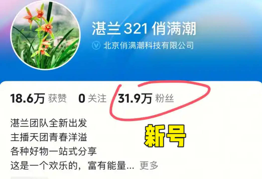 有网友发现,2月12日,张兰注册了一个名为“湛兰321俏满潮”的新账号,仅仅一天时间就吸引了超过30万的粉丝关注。