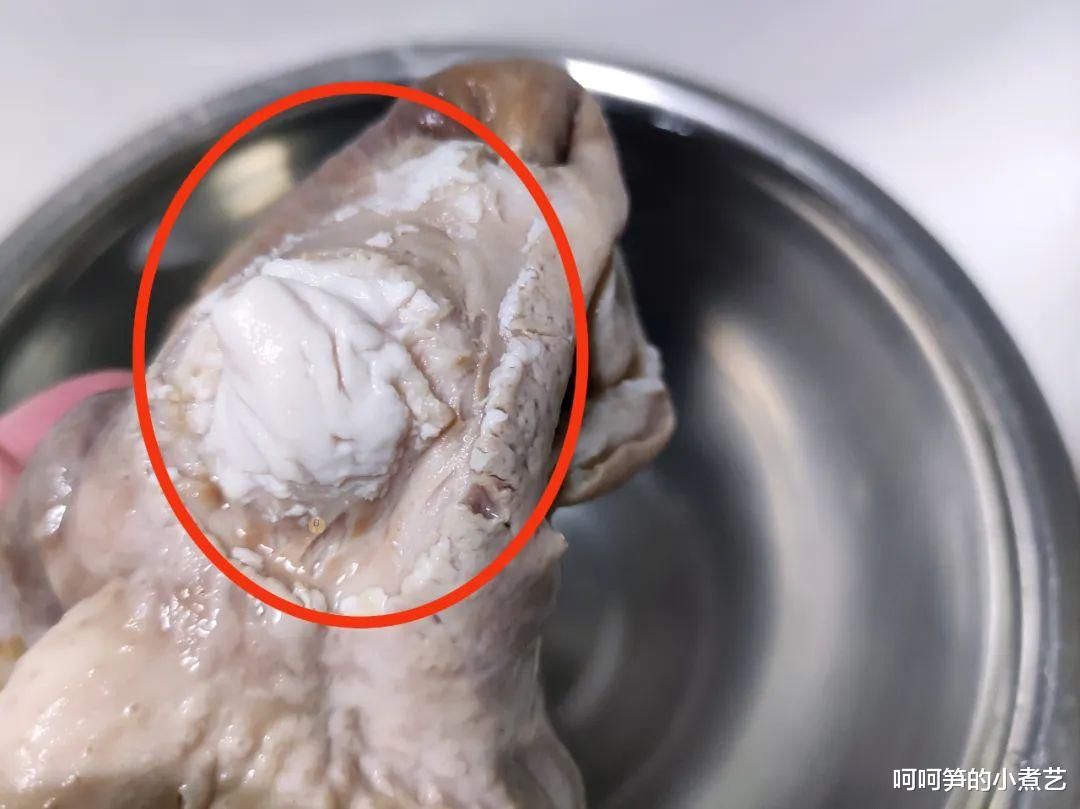 放到清水中降一下温,等到不烫手后把那些白色的膜给刮掉,如果不刮掉会有异味。