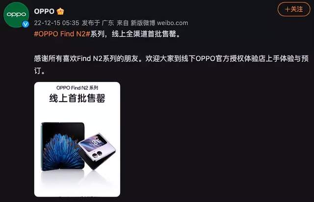 要说哪个手机品牌近期关注度、讨论度拉满,那无疑是OPPO。OPPO未来科技大会 2022展示了多项重磅黑科技与OPPO Find N2折叠屏、芯片等前沿产品令业界与网友感到惊喜。而目前OPPO Find N2开启线上首批预订后,也引发了消费者的热情抢购,作为定价7999元起的折叠屏手机,OPPO Find N2线上全渠道首批售罄。
