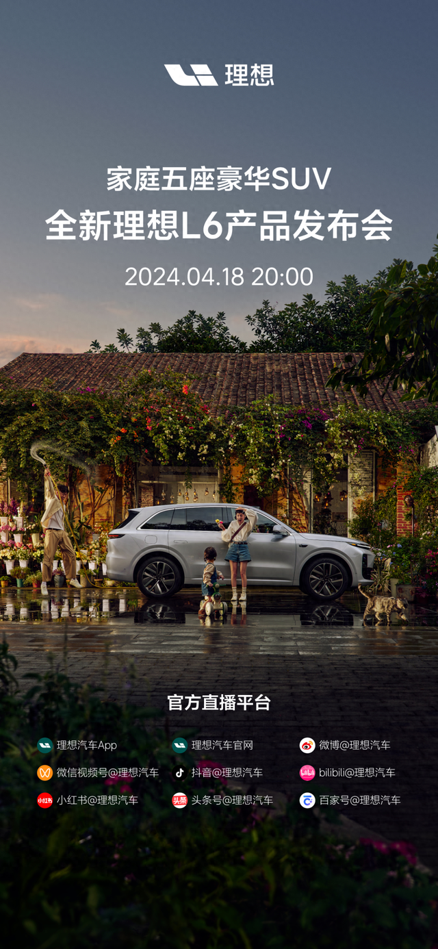 从官方获悉,理想L6将于4月18日正式发布并上市。新车定位五座中大型SUV,售价聚焦25-30万元区间。