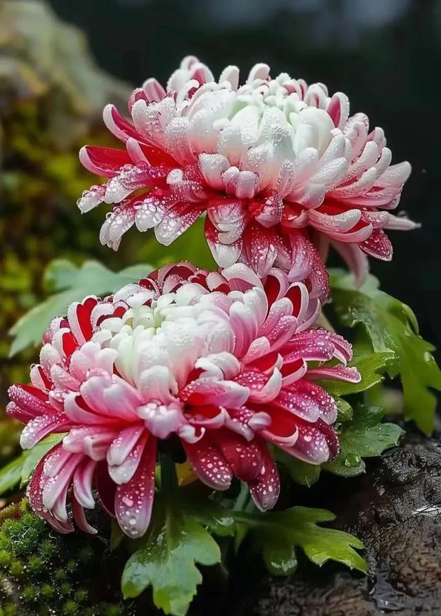 红白双色菊它的花瓣红色和白色相映,层层叠叠的花瓣,朵朵秀丽,高贵典雅,花容月貌,娇娆妩媚,美丽可爱。菊花在秋天繁花盛开,一片色彩斑斓。它的花卉耐旱,耐湿,也有药用价值,消炎,清火,等,它的花语:富贵吉祥,高贵典雅。菊花可做菊花茶,清凉一夏,值得拥有的花卉。