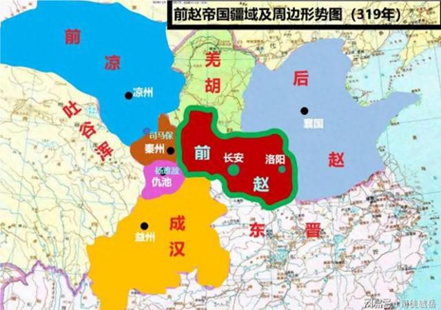 面对刘琨的威胁,刘渊的大臣谏言说,没必要跟刘琨在废墟中作战,我们不如一路向南,夺取河东,长安,最后以长安席卷洛阳之势,定天下。也不失为高皇帝刘邦也。刘渊大喜,于是派遣自己的儿子刘聪占据太行,石勒进攻赵魏之地,将军事活动扩张到中原腹地,随着刘渊影响力的扩大,引来了鲜卑和氐人首领的归附,甚至就连叱诧风云的王弥前来归附,刘渊在中原地区连战连捷,公元308年,刘渊正式称帝,国号还是为汉,定都平阳。