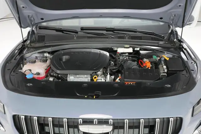 动力系统是这款车的重头戏。1.5T HEV油混系统搭配3挡DHT变速箱,零百加速7.5秒,WLTC综合油耗4.22L/百公里。这个数据在同级别里已经相当亮眼了。发动机最大功率163马力,峰值扭矩255牛米,再加上电动机额外提供的136马力和320牛米动力储备,动力输出绝对充沛。
