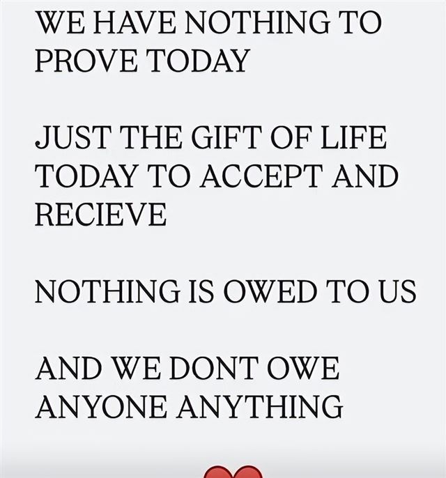 他分享了一张图片,上面写着:“今天我们无需证明什么,只需接受和感受生命的礼物。”