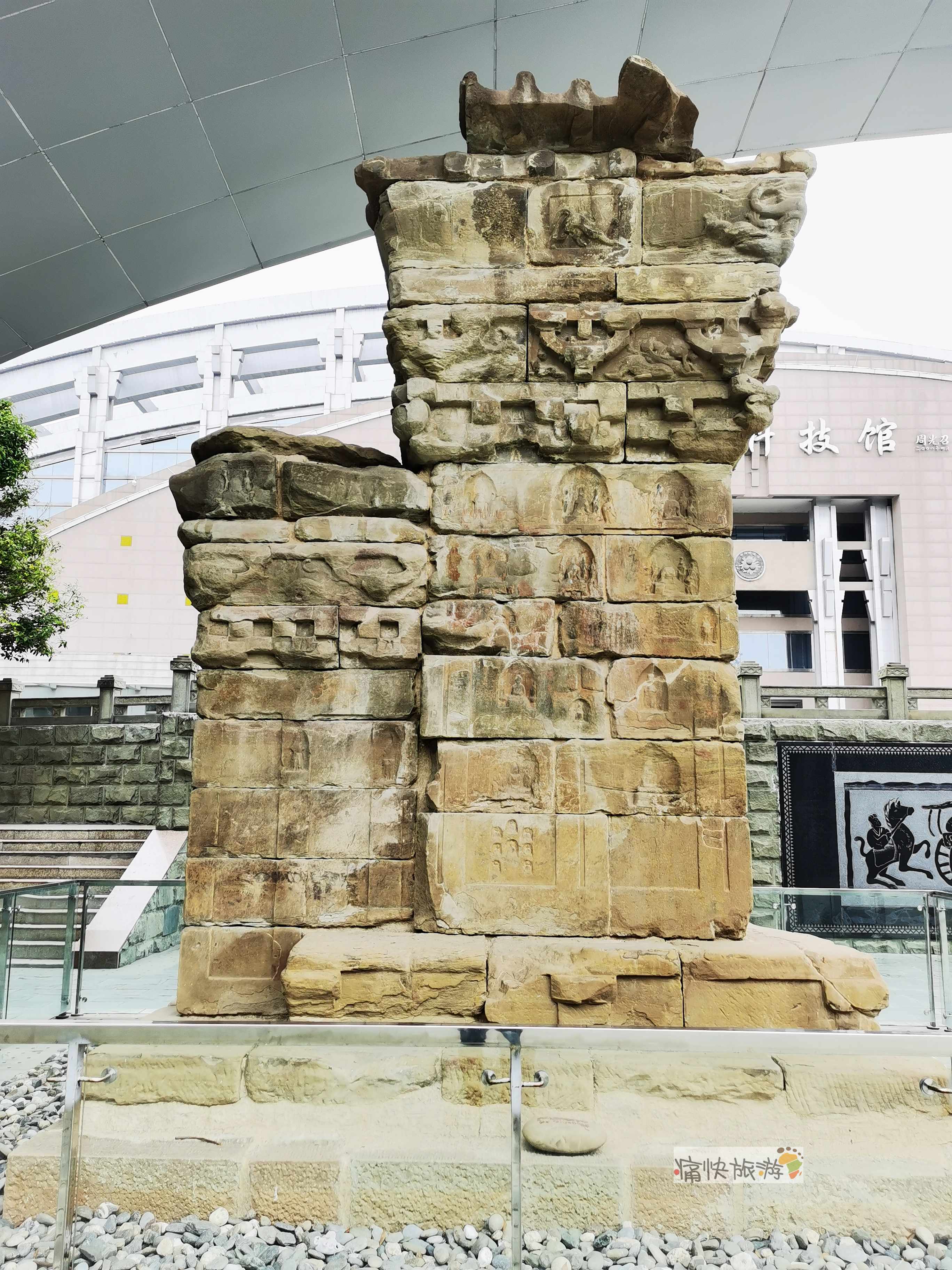 为了更好地保护这座珍贵的历史遗迹,相关部门采取了一系列保护措施,巧妙地用大门为其搭建了一个“保护伞”,既加固了地基,又有效地避免了风雨的侵蚀。古老的建筑与身后的绵阳科技馆形成了强烈的历史和现代的对比,向我们诉说着绵阳的过去、现代和未来。