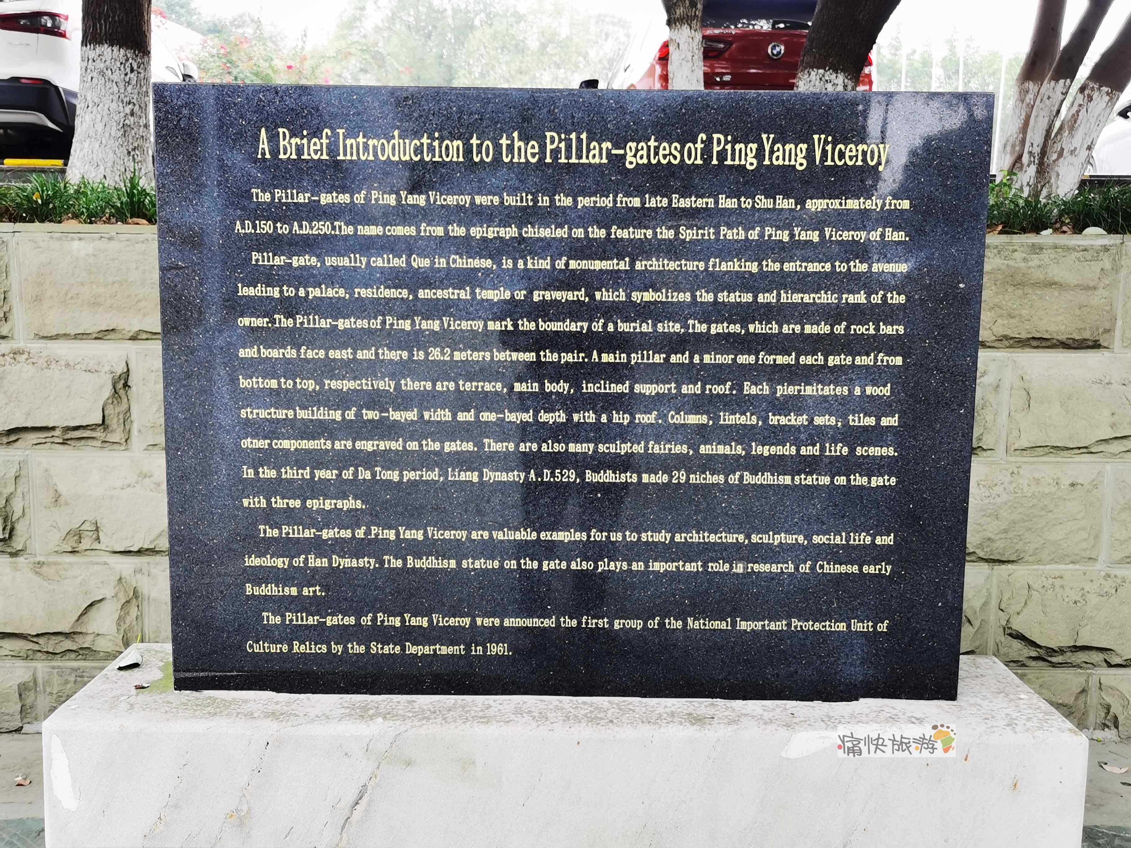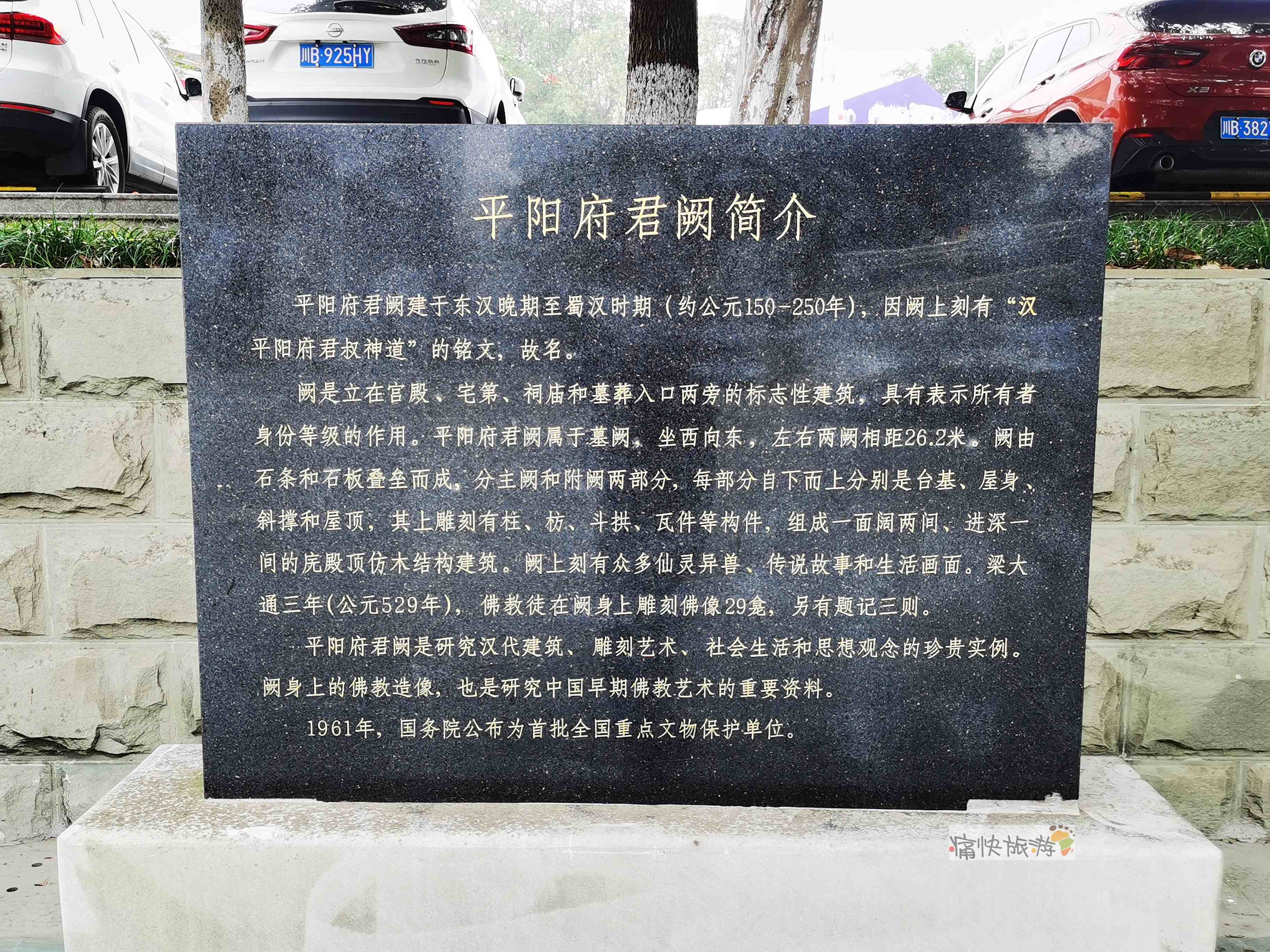 “国保”碑旁边是平阳府君阙简介碑