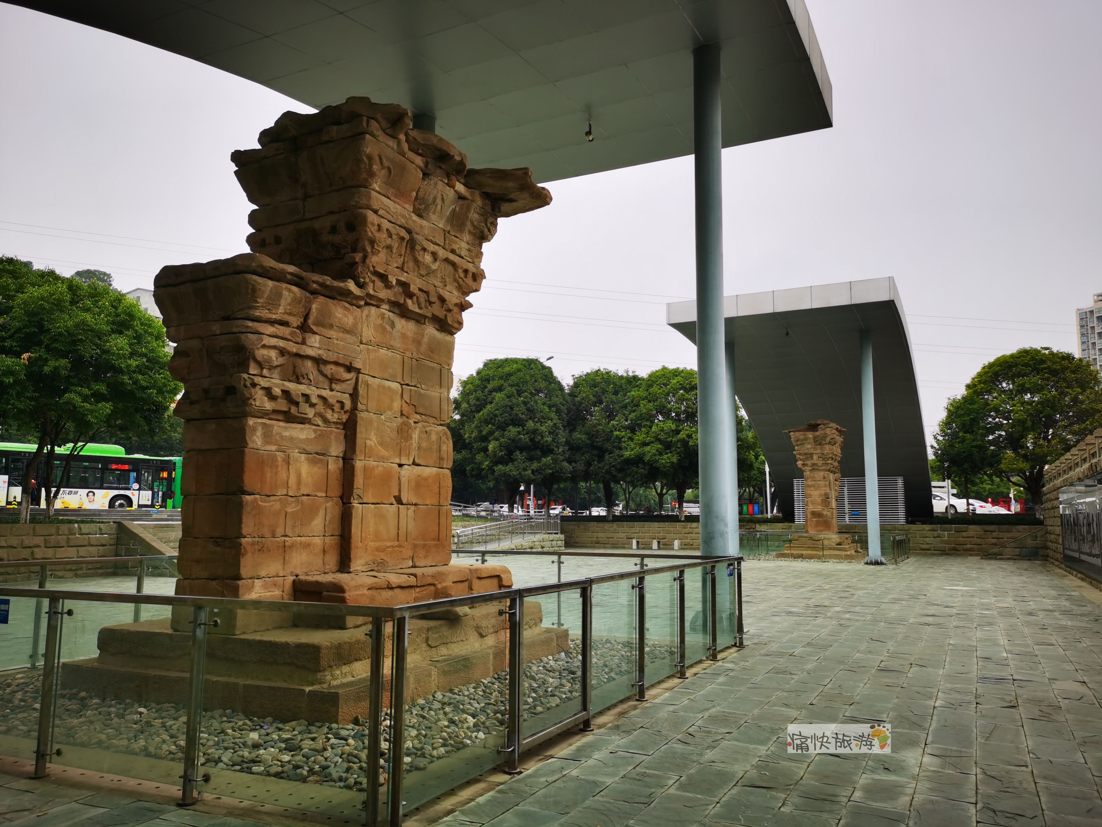 从绵阳站到绵阳科技馆公交站下车,这对1800多年的汉阙即映入眼帘。