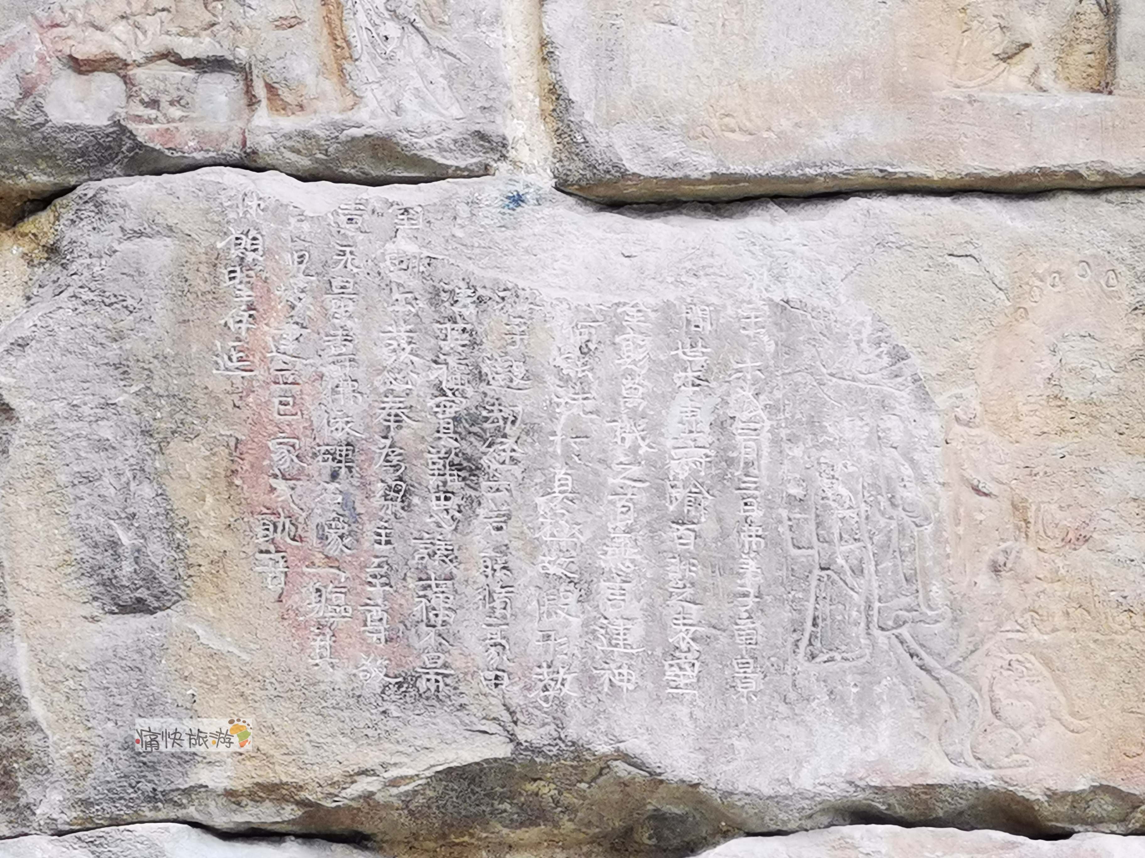 在阙身中部,有梁武帝大通三年(529)起,镌刻于南北朝时期的佛教造像及题记。
