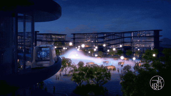 作为销售商品或者为居民提供商业服务的自动驾驶车辆,会被聚集在原型城市中心地带的广场上。