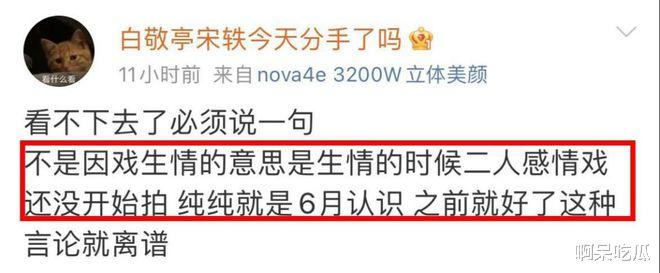 早在9月份的时候,一个账号名为“白敬亭宋轶今天分手了吗”说道,他俩不是因戏生情,那么是否可以理解为,在拍戏之前宋轶就已经和白敬亭好上了。