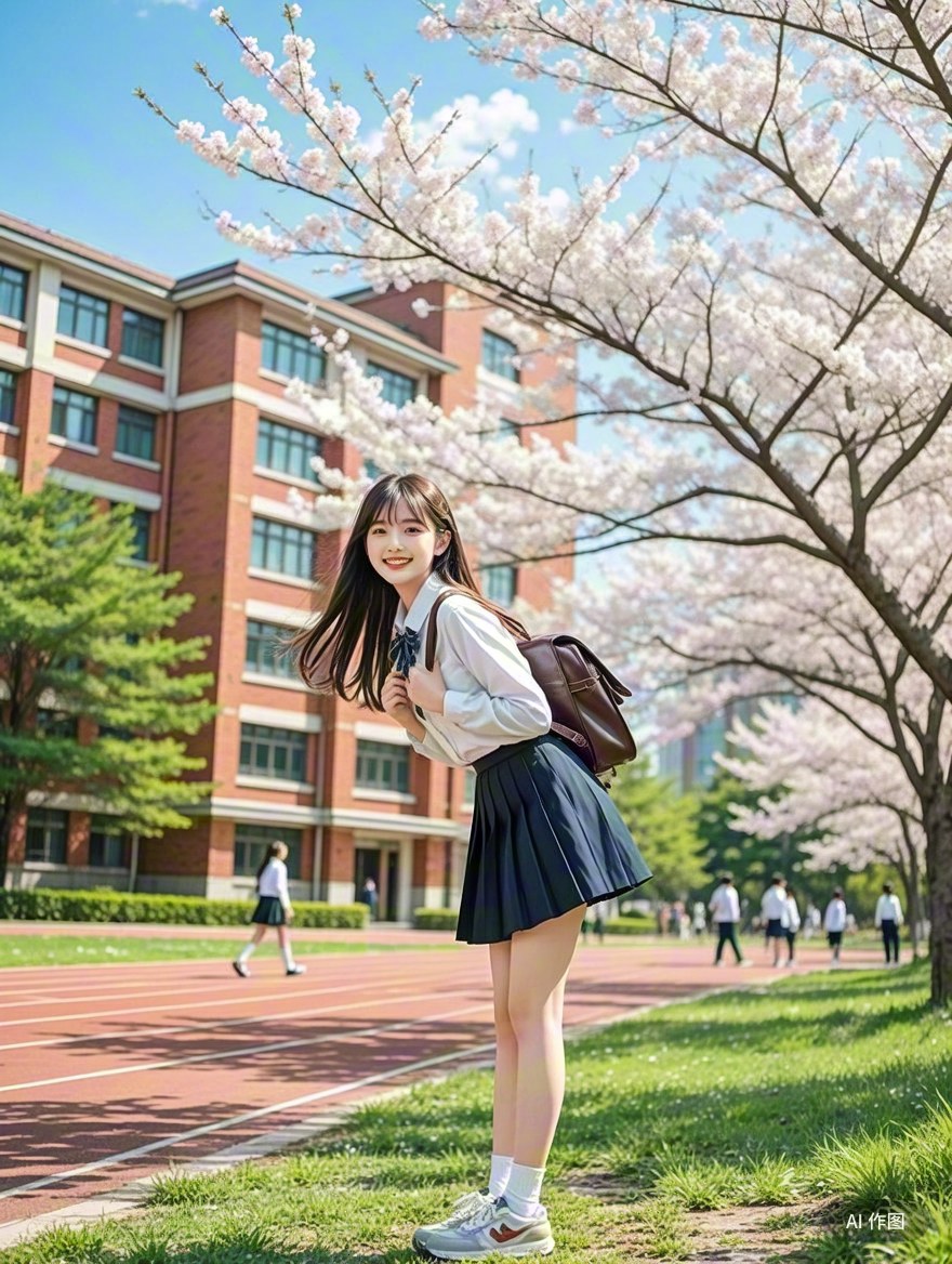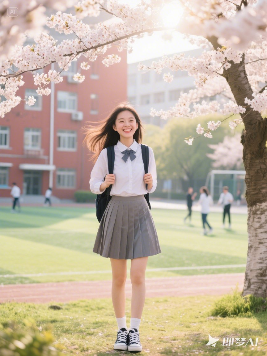 脸庞洋溢着朝气,仿佛清晨初绽的花朵,清新而迷人,发丝随风轻舞,灵动的双眸似藏着璀璨星辰,嘴角微微上扬,散发着青春活力的气息,似乎能感染身边的每一个人,如同春日暖阳,温暖而纯粹,迎着微风,简约的校服轻轻飘动,笑声与鸟儿的歌声交织在一起,仿佛奏响了一曲青春的乐章,书写了青春最灵动的注脚……