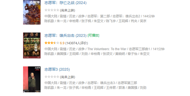 《志愿军》系列作为纪念抗美援朝战争胜利70周年的献礼片共有三部。