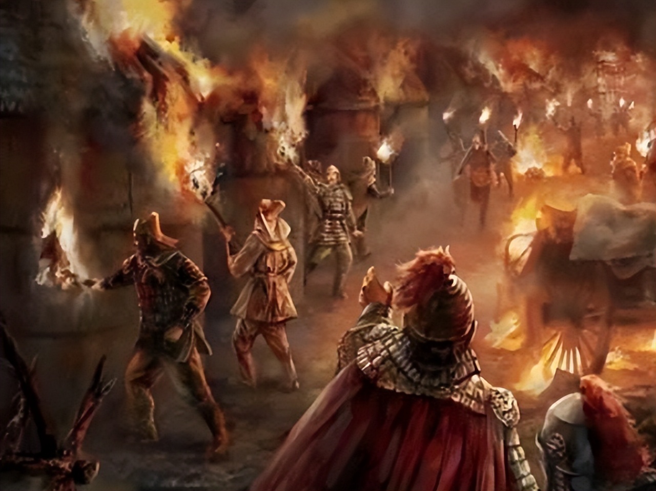一路上,曹军全用袁军旗帜,衔枚绑马口,每人都抱着干草,冒充乌巢协防部队往乌巢赶。待到曹军顺利赶到乌巢时,迅速在乌巢外围放起了大火,袁军营中开始惊乱。